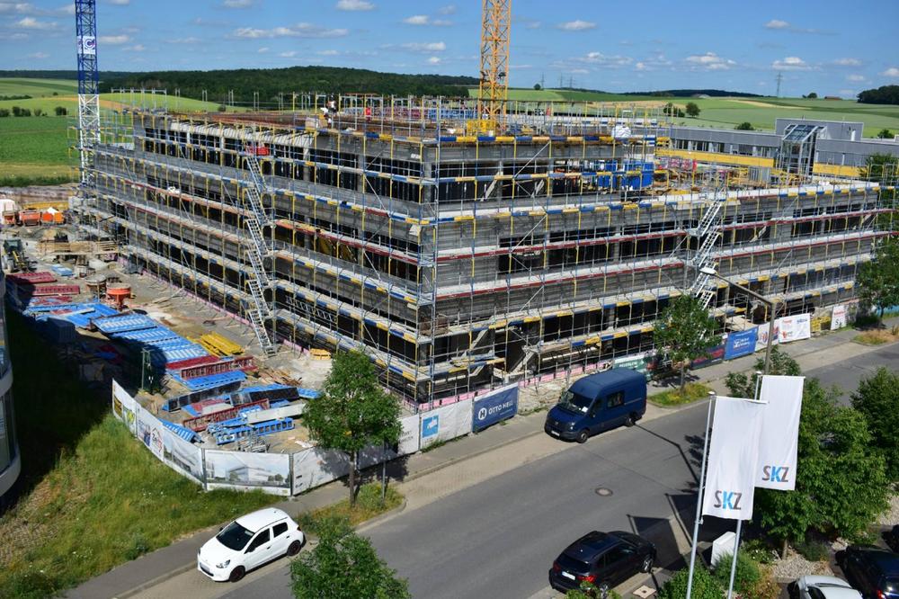 „Ziemlich genau vor einem Jahr fand die Grundsteinlegung statt. Damals standen wir noch vor einer gigantischen Baugrube bei über 30 Grad im Schatten. Heute – nur elf Monate später – stehen wir unter einem gigantischen Richtbaum und erfreuen uns an der Fertigstellung des Rohbaus“, sagte Architekt Steffen Rothenhöfer in seiner Rede. Etwa 1.000 Tonnen Stahl sind inzwischen gebunden und in Zement zu einem viergeschossigen Gebäude gegossen worden. Es sei heutzutage nicht mehr selbstverständlich, dass ein Bauherr ein Richtfest organisiere, so Rothenhöfer. Sein besonderer Dank gehe daher an das SKZ für die Anerkennung der Leistung aller Beteiligten der letzten Monate.