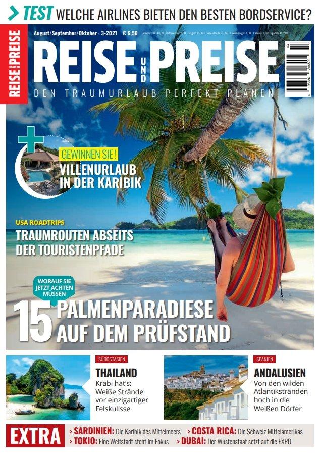 Alles über Zusatzkosten, Sitzabstände und Flottenalter der großen internationalen Fluggesellschaften in Economy, Premium Economy und Business Class finden Sie in der Ausgabe REISE & PREISE 3-21, die ab sofort im Zeitschriftenhandel und über REISE-PREISE.de erhältlich ist.