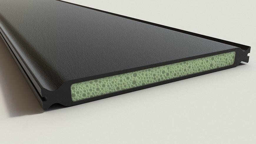 Ein simpler Ansatz, wie es auf den ersten Blick erscheint – doch um die Idee in ein Produkt zu verwandeln, war im Rahmen eines Innosuisse-Projektes viel Konzeptarbeit nötig. Beispiel Produktionsmethode: Nach Tests mit unterschiedlichen Verfahren entschieden sich die Fachleute für die so genannte Extrusion, bei der erhitzter, geschmolzener Kunststoff als weicher Teig durch einen Schlitz gepresst und so geformt wird – um den Streifen aus PET herum. Doch das warf wiederum Fragen auf, zum Beispiel nach dem Anteil der Luftporen in dieser «Füllung».