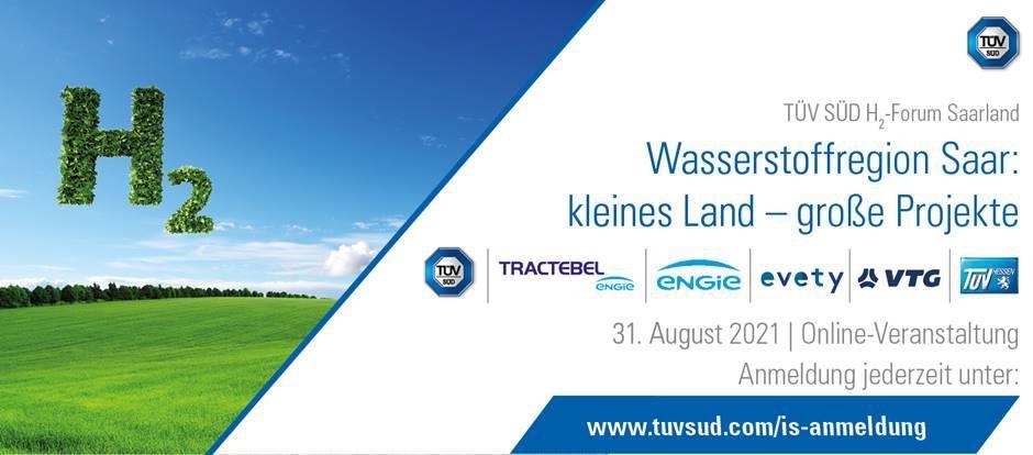 Mit der besonderen Rolle des Saarlandes bei der Entwicklung des Energieträgers Wasserstoff in einer traditionsreichen Industrieregion und mit spannenden, teilweise grenzüberschreitenden Projekten befassen sich namhafte Referenten beim TÜV SÜD H2-Forum „Wasserstoffregion Saar: kleines Land – große Projekte“ am 31. August 2021.