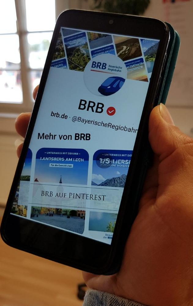 Die BRB versteht sich allerdings nicht nur als „Transportmittel“, sondern auch als Partner ihrer Fahrgäste, die rund um die Fahrt noch Hinweise oder erstmal eine Idee für eine Fahrt haben möchten. „Wir geben gerne auch Ausflugstipps für die Regionen, in denen wir mit unseren Zügen unterwegs sind“, erzählt Amini. Und dafür eignet sich der Social-Media-Kanal „Pinterest“ hervorragend. Seit ein paar Wochen ist die BRB nun auch dort unterwegs. „Wir nutzen Pinterest als Ideenseite für Ausflüge, für Hinweise auf unsere Partner in unseren vier Netzen und wollen allem eine persönliche Note geben“, beschreibt Amini. So wurde bei zwei internen Wanderungen von BRB-Mitarbeitenden mit den beiden Geschäftsführern fleißig fotografiert, um die Strecken auf Pinterest zu veröffentlichen. Einmal ging es nach Landsberg am Lech, einmal am Tegernsee entlang. Pinterest-Nutzer können sich diese Informationen an ihre persönliche Pinnwand heften und bei Gelegenheit die beiden Ausflüge unternehmen.