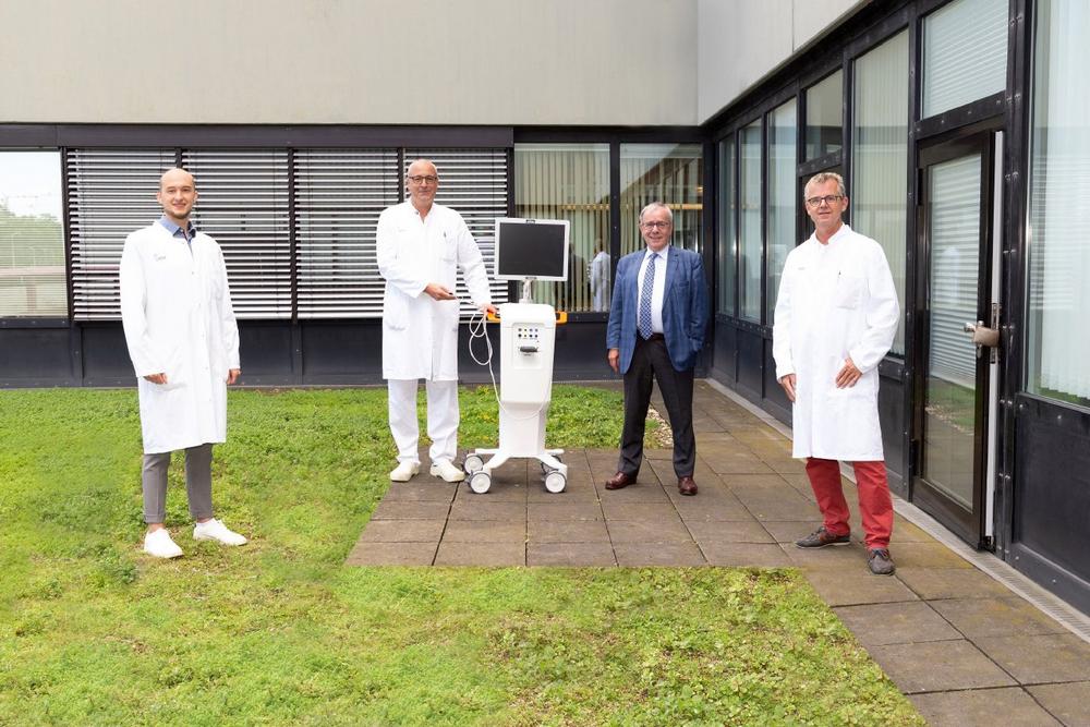 Mit 40.000 Euro übernahm die Westfälische Herzstiftung anteilig die Kosten für die Anschaffung eines neuen Flussmessgeräts für die Klinik für Herzchirurgie am UKM (Universitätsklinikum Münster). Die Flussmessung wird bei Herz-Operationen durchgeführt, um die Qualität der neu angelegten Bypässe zu überprüfen. So können spätere Komplikationen beziehungsweise eine erneute Operation vermieden werden. Diese Messungen sind zwar in Münster bereits seit 15 Jahren standardisiert, neu ist aber die Funktion zur Messung des Verkalkungsgrades der Hauptschlagader. „Da bei Herz- und Gefäßpatienten die Hauptschlagader häufig verkalkt ist, geht mit dem Anschluss der Herz-Lungenmaschine auch immer das Risiko einher, eine solche Verkalkung abzulösen, was im schlimmsten Fall zu einem Schlaganfall führt“, erklärt Prof. Andreas Hoffmeier, leitender Oberarzt in der Klinik für Herz- und Thoraxchirurgie. Mit der Ultraschallsonde kann der Herzchirurg vor dem Anschluss der Herz-Lungenmaschine das Innere der Hauptschlagader sichtbar machen, um die optimale Stelle für den Anschluss zu finden. So wird das Risiko für einen Schlaganfall gesenkt. „Wir sind über die Zuwendung sehr glücklich“, freut sich Hoffmeier über die Modernisierung des Geräteparks.