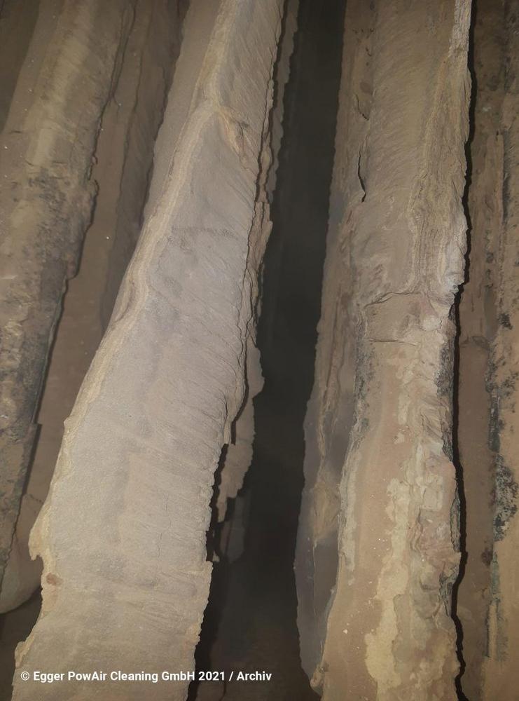 Normalerweise werden die besten Erfolge mit HOT PowAir und Egger PowAir Glass Pearls erzielt. Doch damit war bei dieser Industrieanlage nichts zu machen. Da musste ein stärkeres Kaliber her: HOT PowAir mit Egger Glass Granulat.