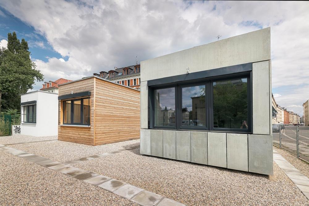 Die Planung für das Forschungsprojekt und eine vorab durchgeführte Sensitivanalyse zur Abschätzung des bauphysikalischen Verhaltens nahmen einige Monate Vorlaufzeit in Anspruch. Im März 2020 errichtete KLEUSBERG schließlich am Forschungscampus in Leipzig drei einzelne Module, welche sich hinsichtlich der verwendeten Baustoffe und ‑konstruktionen voneinander unterscheiden. Der Standort wurde gewählt, um während der Untersuchungen möglichst gleiche Bedingungen – beispielsweise bezugnehmend auf die Nachbarbebauung und die damit verbundene Beschattung der Bauten – gewährleisten zu können, gleichzeitig jedoch repräsentativ für Forschungsbeteiligte zu bleiben. Die Fassade sowie Wand- und Deckenverkleidung innen besteht bei einem Modul aus Carbonbeton. Das zweite Modul beruht auf einer Holz-Lehm-Konstruktion, das Dritte stellt den Standardaufbau eines KLEUSBERG Moduls mit Gipsfaserplatten und Mineralwolldämmung dar. An allen werden raumklimatische Untersuchungen durchgeführt und verschiedene Nutzerverhalten analysiert. Zu Beginn liegt der Fokus auf dem sommerlichen Wärmeschutz sowie der thermischen Behaglichkeit. Bei zwei der drei Module laufen die Testungen bereits seit September 2020. Die Messungen des Carbonbeton-Moduls starteten im April dieses Jahres. Die Beobachtung wird bis Ende Oktober 2023 fortgeführt. Im Anschluss stehen drei Sommer sowie Heizperioden als Bemessungszeiträume für ein repräsentatives Ergebnis zur Verfügung.