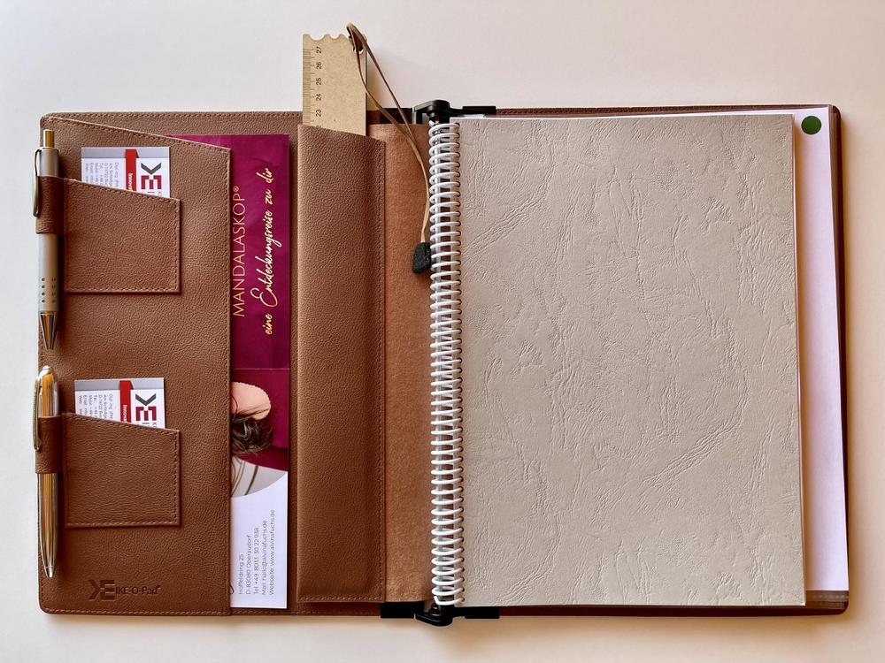 Der Ringblock kann sekundenschnell ausgewechselt und ersetzt werden. Dadurch ist es möglich, dass das sehr schöne, personalisierte und sehr hochwertige IKE-O-Pad® Apfelleder weiterverwendet werden kann.
