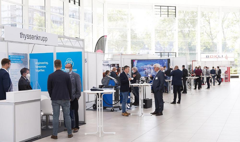 Abgerundet wurde das Tagungsprogramm durch die begleitende Ausstellung. Parallel zu den Referaten fand im neuen lichtdurchfluteten Glasfoyer der Messe Essen die EXPO statt. Insgesamt 16 Unternehmen präsentierten dort ihre branchenspezifischen Lösungen. Zu den Ausstellern gehörten Abicor Binzel, Air Liquide, Bokli, Cloos, Durum, HKS Prozesstechnik, ESAB, TBi Industries, Knowhow Wilhelms, Lorch, Merkle, Migatronic, Oerlikon Metco, Thyssen Krupp Materials, TÜV Nord und VauQuadrat. Vor Ort konnten die Besucher zudem einen Eindruck über die Maschinen der Aussteller gewinnen. So feierte unter anderem ein Metall-3D-Drucker seine Deutschlandpremiere. Auch ein Exot unter den Schweißgeräten – eine Maschine für das Kondensatorentladungsschweißen – war zu sehen.