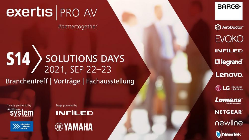 Wir bedanken uns für die tolle Zusammenarbeit mit allen Partnern und Referenten, welche maßgeblich dazu beigetragen haben, dass die diesjährigen S14 Solutions Days zu einem so erfolgreichen Event geworden sind. Ein besonderes Dankeschön geht an unsere Gastreferenten Rachel Linnemann von Microsoft, welche das Thema “Microsoft Teams Rooms Devices Partner Opportunities” vorstellte sowie an Mike Blackman von der ISE, welcher über die Entwicklung der AV Industrie in Zeiten von Corona – Chancen und Potenziale referierte. Ebenso möchten wir uns bei Jürgen Klinsmann bedanken, welcher als krönender Abschluss und finales Highlight in einer Video-Live-Schaltung im Dialog mit Rainer Sprinzl über Führungskultur und über den Einsatz von Medientechnik im Fußball sprach.