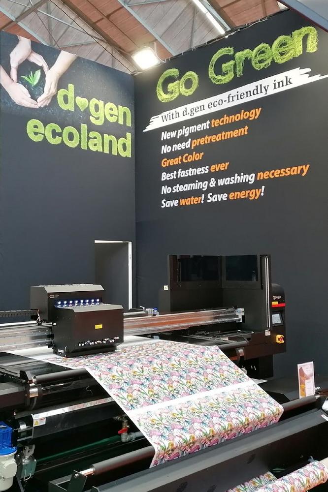 Als eine sehr gut organisierte FESPA und erfolgreiche erste Live-Veranstaltung seit 2019, ließ sich die vergangene Fachmesse in Amsterdam bezeichnen. Auch das Multi-Plot Team und Partner d.gen können ein äußerst positives Feedback geben und sehr zufrieden mit dem Verlauf der Messe sein. „Etwas kleiner und mit einigen Besuchern weniger, aber dafür qualitativ hochwertig und begeistert für neue Technologien und Verbrauchsmaterialien“, so beschreibt Joachim Rees von Multi-Plot das Publikum und die Atmosphäre der Fachmesse. Der Auftritt und die Präsentation der d.gen Maschinen mit neuen Techniken unter dem Motto „Go Green“ war ein Erfolg und lässt die beiden Digitaldruck-Spezialisten optimistisch in die Zukunft blicken. Alle Systeme waren perfekt aufeinander abgestimmt und zeigten u.a. die immer stärker nachgefragte Pigmenttechnologie auf elastische Textilien. Auch die Sublimation und die damit verbundenen Drucke auf blueback Papier waren ein äußerst interessantes Thema. Die Kooperationen mit Partnern wie Mimaki, Klieverik, Kaspar oder Summa gingen Hand in Hand über und sorgten für eine positive Stimmung. Ergänzend zu den Textildruck-Lösungen konnte Multi-Plot somit seinen Kunden die passenden Geräte, Zubehörteile und Verbrauchsmaterialien näher bringen.