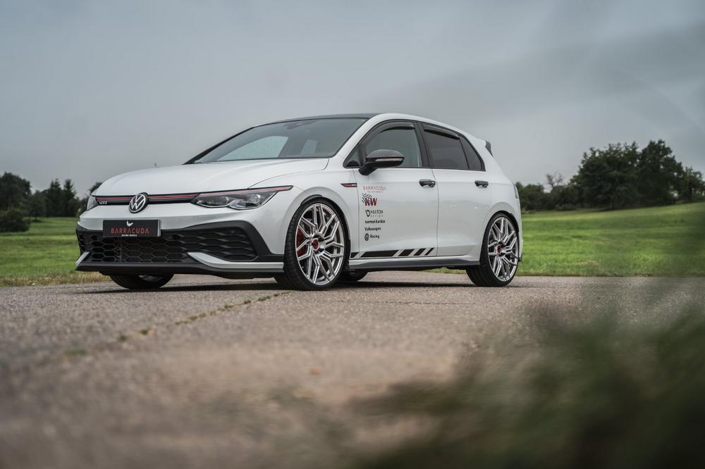 Als weiterer Hingucker sind die Räder in diesem Fall – passend zu den entsprechenden typischen Design-Akzenten des GTI – mit Felgendeckeln in Rot kombiniert. An den Achsen verschraubt sind sie mit den eintragungsfreien Barracuda Racing Bolts in Schwarz. Diese Schrauben sind in verschiedenen Farben und für quasi alle Felgen-Anwendungen erhältlich. Sogar individuelle Anfertigungen mit einer gewünschten Schaftlänge sind möglich. Zudem sind die Racing Bolts auch als Radmuttern erhältlich.