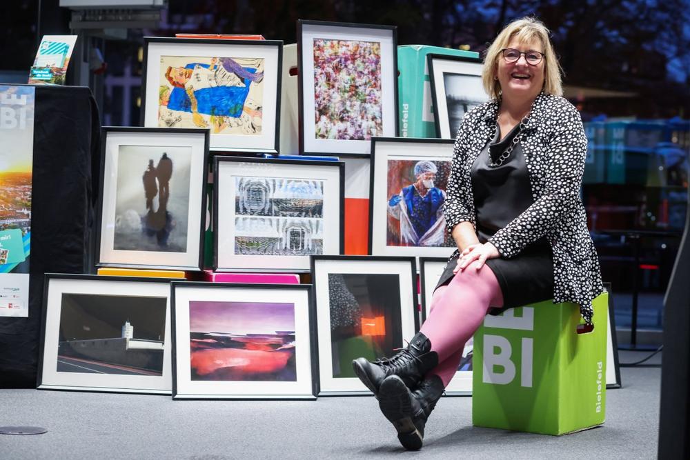 „Nach der Phase des weihnachtlichen Kunst Verschenkens, heißt es jetzt: Gönn‘ Dir selbst was Schönes!“, sagt Marianne Weiß, bei Bielefeld Marketing für das Kulturmarketing verantwortlich. Als Organisator der Kunstdruck-Aktion stellt Bielefeld Marketing ab sofort die „KunstEdition 2021/22“ in der Lobby der Volksbank Bielefeld-Gütersloh am Kesselbrink aus. „Wir freuen uns, dass wir mit der Volksbank einen Partner gefunden haben, um die Motive aus der diesjährigen Kollektion einem breiten Publikum zeigen zu können“, so Weiß.