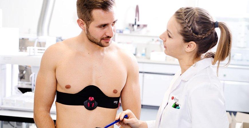 Für die präzise Erfassung von Veränderungen dieser Parameter werden Messungen über einen längeren Zeitraum benötigt. «Die Langzeitmessungen sollten in den Alltag integrierbar sein», betont Simon Annaheim. Für alltagstaugliche Messungen sind hautverträgliche und komfortable Messsysteme unabdingbar. Der Diagnostik-Gurt basiert daher auf flexiblen Sensoren mit elektrisch leitfähigen bzw. lichtleitenden Fasern sowie Sensoren für Bewegungs- und Temperaturmessung.