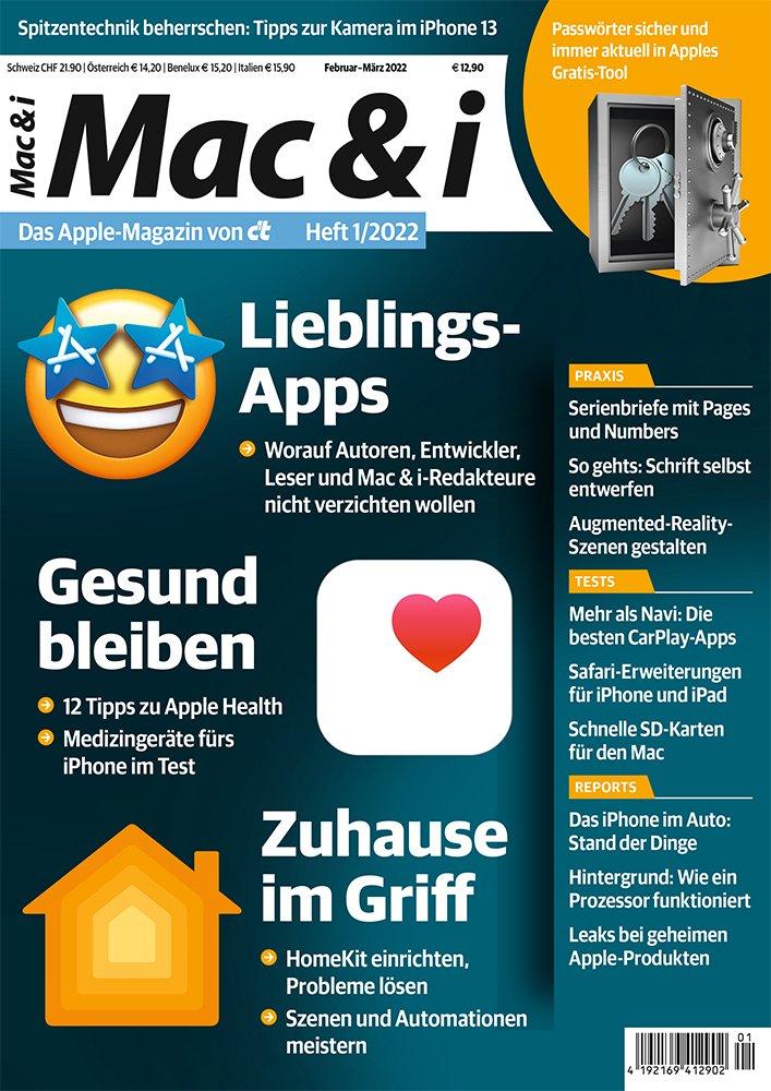 Mac & i gibt in der aktuellen Ausgabe 1/22 Tipps zur Health-App auf iPhone und Apple Watch und testet darüber hinaus medizinische Geräte mit iPhone-Anbindung für zu Hause.