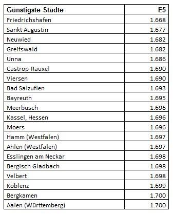 Friedrichshafen günstigste Stadt in Deutschland, Konstanz die teuerste