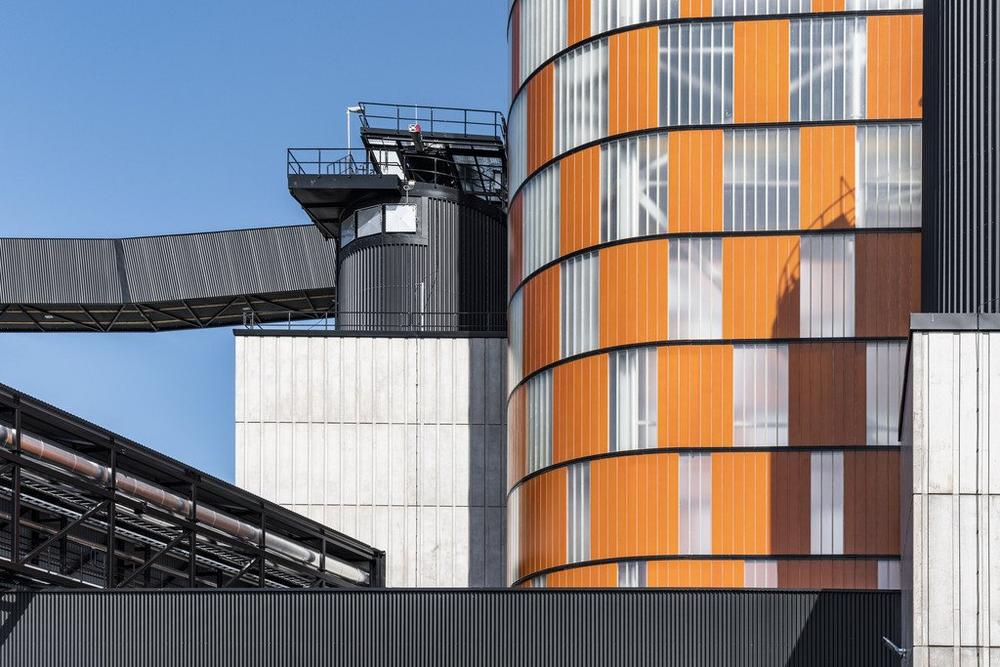 Für die Architekten von Carpe Futurum erfüllte das Produkt also alle Anforderungen und bot die baulichen Qualitäten, die für ein modernes, weithin sichtbares Gebäude in der Skyline von Uppsala erforderlich sind. So sollte sich das Erscheinungsbild von Carpe Futurum harmonisch in das Stadtbild einfügen und andere Wahrzeichen von Uppsala wie das Schloss, die Kathedrale und den Wasserturm nicht dominieren. Die sich nach oben verjüngenden Muster aus transparentem und orangefarbenem Glas symbolisieren den Prozess der Wasserverdunstung – die Grundlage der Stromerzeugung – da der Wasserdampf abkühlt und die zusätzliche Wärme über das Fernwärmenetz an Haushalte und Unternehmen abgegeben wird.