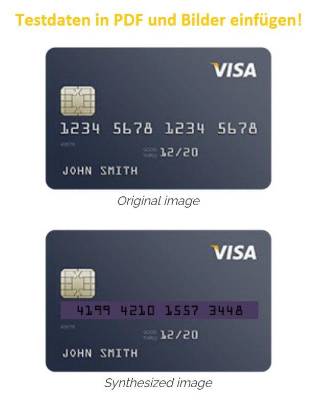 Diese Fähigkeit ermöglicht es Entwicklern und Testern von Anwendungen, die diese Datenquellen verarbeiten oder anderweitig verwalten, mit realistischen, aber sicheren/künstlichen Mustern in DevOps etc. zu arbeiten. Sie ermöglicht keine betrügerische Erstellung von Dokumenten oder Bildern aufgrund von wesentlichen Unterschieden im Hintergrund (Aussehen) und in der Art (Randomisierung) der Testwerte gemäß den gezeigten Beispielen.