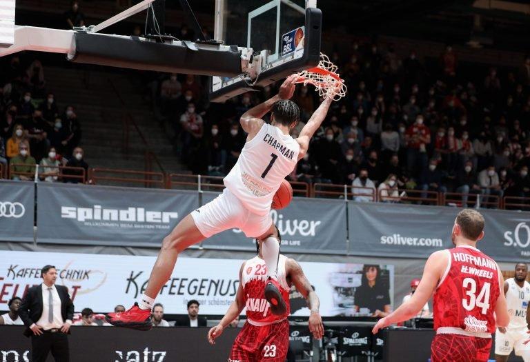 - Viertel (22:22): Nach der Pause präsentieren sich die Academics defensiv endlich wacher und engagierter. Auch offensiv scheinen die Kurpfälzer neues Selbstvertrauen gefunden zu haben und können vor allem dank des Ex-Würzburgers Rob Lowery ihren Rückstand wieder verkürzen. In der 23. Minute steht es 54:47 und das Momentum scheint langsam in Richtung der Academics zu kippen. Weiter kann sich die Mannschaft von Frenki Ignjatovic leider nicht heranbeißen. Obwohl die Defensive weiter sehr gut steht, vergeben die Heidelberger vorne zu viele Chancen, als dass sie das Spiel wirklich eng gestalten könnten. Erst durch Brekkott Chapmans spektakulären Dunk zum 58:53 können sich die Gäste wieder in direkte Schlagdistanz bringen, was in der 26. Minute auch direkt zur nächsten Würzburger Auszeit führt. Die Franken zeigen nun eine eindrucksvolle Reaktion, legen nach der Auszeit einen schnellen 8:2-Lauf hin und stellen in der 27. Minute mit 66:55 ihre zweistellige Führung wieder her. Davon lassen sich die Gäste scheinbar beeindrucken: Vor allem offensiv verfallen die Academics wieder in die Muster des zweiten Viertels, spielen nicht als Team zusammen und leisten sich zu viele unnötige Fehler. So können sich die Hausherren bis zum Viertelende weiter leicht absetzen, sodass die Heidelberger Mannschaft mit einer Hypothek von 74:61 inS Schlussviertel startet.