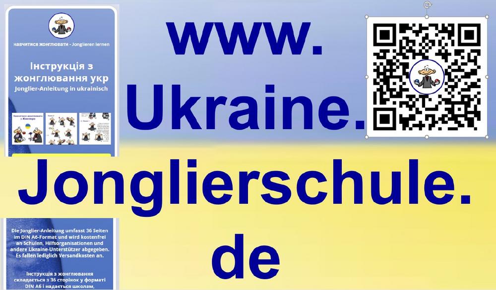 Auf einer DIN A4-Seite (PDF) ist alles Wissenswerte zu diesem speziellen "Ukraine-Service" zusammengefasst, siehe https://Jonglierschule.de/Ukraine/Weblink-Uebersicht.pdf