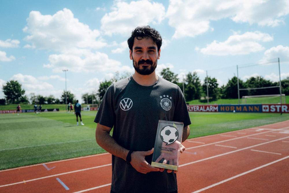 Gündoğan, der sich noch am gleichen Nachmittag mit der Nationalmannschaft in Richtung Budapest zum UEFA Nations League Spiel gegen Ungarn aufmachte, freute sich über die Wahl der Fans: „Ich bedanke mich bei allen, die mich zum Deutschen Fußball Botschafter 2022 gewählt haben und empfinde dies als große Ehre. Vielen Dank!“