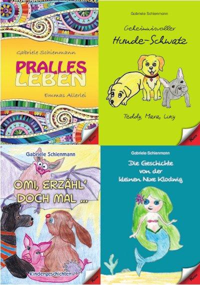 „Omi, erzähl doch mal“ (ISBN 9783957161710) ist ein Kinderbuch, an dem drei Generationen mitgewirkt haben: Omi Gabriele Schienmann entwickelt lustige Geschichten gemeinsam mit ihren Enkeln. Diese und ihre Mütter haben die Bilder zu den sechs phantasievollen Geschichten für Kinder im Vorlese- und Erstlesealter beigetragen. In Schienmanns Geschichten kommen allerlei Tiere zu Wort. Da bekommt ein Biber eine Brille, ein Pinguin schließt Freundschaft mit einer Fledermaus, oder ein Schweinchen besucht die Tiere im Zoo. Aber auch je eine Geschichte über den Weihnachtsmann und über den Osterhasen sind zu finden. Sie sind verrückt, tiefsinnig und lustig, oft märchenhaft, aber immer liebenswert. Die Tiere erhalten eine Stimme und kommunizieren fröhlich untereinander oder mit den zweibeinigen Helden der jeweiligen Erzählungen. Darin werden Pläne geschmiedet, gestritten und viel gelacht. Es geht immer um Freundschaften und – was den Erzählern besonders wichtig ist – den liebevollen Umgang miteinander.