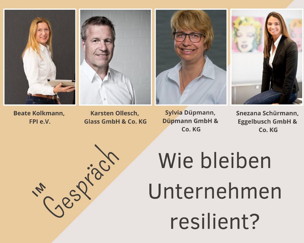 Sylvia Düpmann, Qualitätsmanagement und Datenschutzbeauftragte bei Düpmann, Snezana Schürmann, Geschäftsführende Gesellschafterin bei Eggelbusch, und Karsten Ollesch, Prokurist bei Glass, schildern, was ganz oben auf ihrer Prioritätenliste steht und wie ihre Lösungen aussehen. Mit am Tisch: Beate Kolkmann, stellvertretende Geschäftsführerin der Food-Processing Initiative. Die Brancheninitiative unterstützt Unternehmen im Rahmen von CirQuality OWL, einem Projekt für zirkuläre Fragestellungen in der Ernährungswirtschaft.