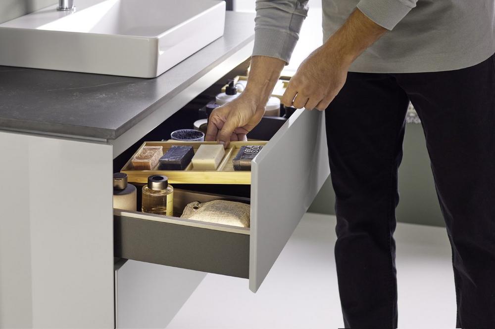 Die neuen Abläufe von Geberit wurden so gestaltet, dass für den Siphon keine Aussparung in der Schublade mehr nötig ist. Ermöglicht wird das, indem sowohl die Abwasserrohre als auch der Siphon eng an der Keramik und an der Wand entlanggeführt werden. Dies gilt sowohl für die Geberit ONE Waschtische mit horizontalen und vertikalen Abläufen mit 48 cm Ausladung als auch für die neuen Geberit iCon Waschtische. Die Montage des Siphons benötigt dabei lediglich etwa zehn Minuten – mit einem beeindruckenden Ergebnis in Form von dazugewonnenem Stauraum.