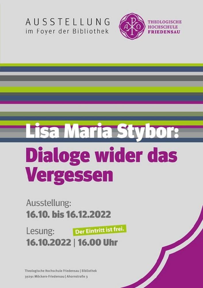 Lisa M. Stybor, 1953 in Aachen geboren, ist Malerin und Zeichnerin. Sie lehrte an den Hochschulen in Aachen und Düsseldorf sowie an der School of Art in Norman, Oklahoma, und dem Rochester Institute of Technology, New York. Von 1993 bis 2016 arbeitete sie als Professorin für Farbe, Fläche, Raum in den Fachbereichen Design und Architektur an der Hochschule Anhalt in Dessau. Zu ihrem Zyklus „Dialoge wider das Vergessen“ äußert sich die Künstlerin: