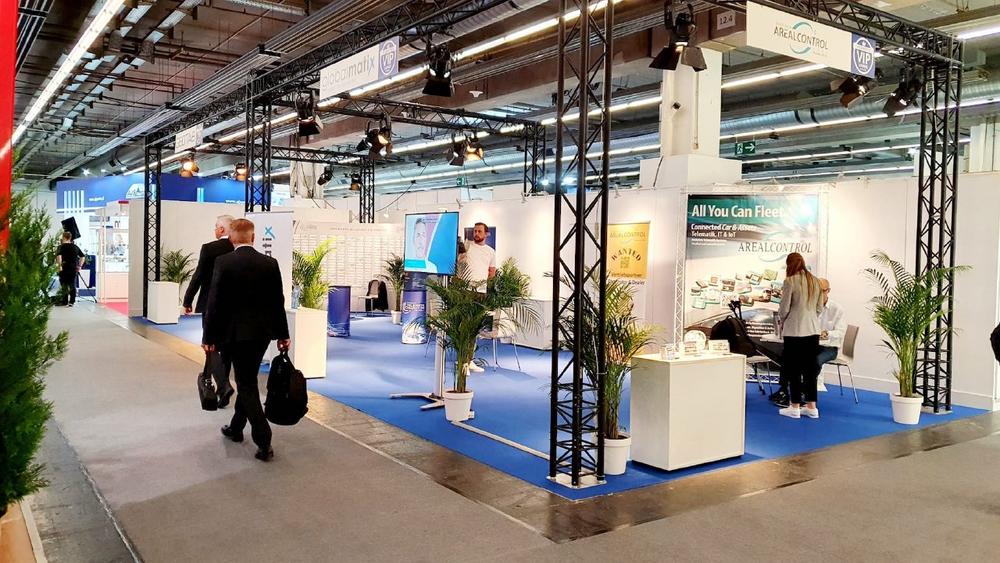 Auf knapp 90 Quadratmetern präsentieren die Mitaussteller Arealcontrol, GlobalmatiX und Geotab ihre modernen Telematik-Lösungen zur Vernetzung von Fahrzeug und Flotte, sowie zur Optimierung übergreifender Betriebsprozesse.