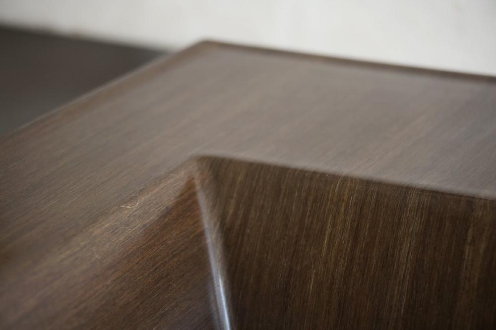 Die Kaffeebar im Erdgeschoss ist aus dem pflanzlichen Werkstoff EKOA® gefertigt. Dieses Material von Lingrove, einem Partner der Mitsubishi Chemical Group, ist ein kosteneffizientes, CO2-neutrales Produkt, das Holz in Innenräumen ersetzen kann – von Einrichtungsgegenständen und Böden bis hin zu Möbeln und Wänden.