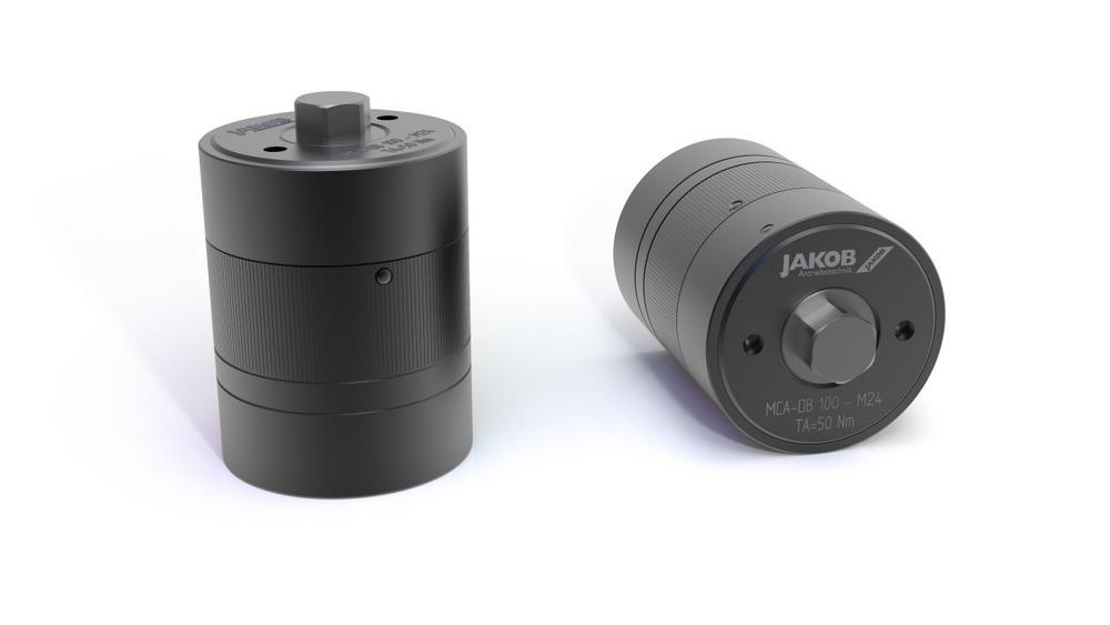Die neuen Varianten MCA-DB und MCG-DB erweitern die Kraftspannmuttern um eine voreingestellte Drehmomentbegrenzung. Dadurch wird kein Drehmomentschlüssel mehr benötigt, ein einfacher Schraubenschlüssel genügt und die Spannkraft der Mutter wird stets korrekt aufgebracht. Die Drehmomentbegrenzung ist in einem Aufsatz verbaut, der von JAKOB werkseitig auf das gewünschte Drehmoment voreingestellt wird.