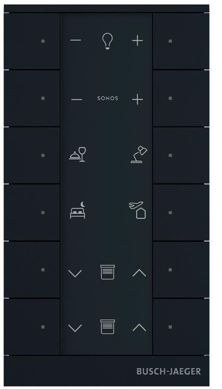 Das Design von Busch-Tenton® zeichnet sich durch eine klare, schnörkellose Formensprache aus. Eine individuelle Gestaltung der Sensoreinheit über das Online-Beschriftungs-Tool erleichtert die Bedienung. Im Busch-Tenton® Multitastsensor ist bereits ein Raumtemperaturregler integriert. Dieser wird aber nicht über ein Display angezeigt, sondern ist per App steuerbar. Bei Busch-Tenton® mit Raumtemperaturregler wird direkt auf einer zusätzlichen klaren Displayanzeige der Status von Soll- und Ist-Wert der Temperatur dargestellt. Bis zu zehn weitere Bedienungen sind über die Sensoreinheit möglich.