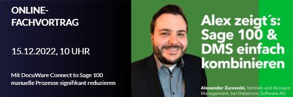 In unserem kostenfreien Online-Fachvortrag zeigen wir Ihnen, wie Sie durch die Integration Ihrer Sage 100 Lösung in DocuWare den manuellen Zeitaufwand für die Bearbeitung Ihrer kaufmännischen Prozesse um bis zu 50 Prozent reduzieren können.