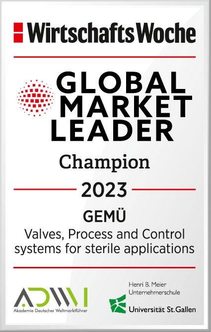 For what’s already the seventh time in a row, valve specialist GEMÜ is being awarded the WirtschaftsWoche "Global Market Leader – Champion 2023" quality seal. The basis for the award is the inclusion of GEMÜ in the global market leader index in the segment "Valves and automation components: Valves, Process and Control systems for sterile applications".