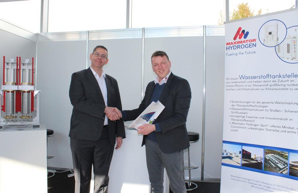 Nach der Bestellung von anfänglich drei Wasserstoffbussen für den ÖPNV folgt nun die entsprechende Wasserstofftankstelle für die Stadt Weimar. In der öffentlichen Ausschreibung für die passende Ladeinfrastruktur des Modell-Projektes hat sich mit Maximator Hydrogen ein Thüringer Spezialist für Wasserstofftankstellen durchgesetzt. Die beiden Vertragspartner trafen sich beim ersten Thüringer Wasserstoff-Netzwerktreffen und besiegelten die Partnerschaft im Rahmen der Thüringenausstellung in Erfurt. „Mit der umfangreichen Erfahrung von Maximator Hydrogen freuen wir uns, einen zuverlässigen Technikpartner an der Seite zu haben, um unser Ziel vom CO2-freien Nahverkehr in die Realität umzusetzen.“, sagt Bernd Wagner, Stadtwirtschaft Weimar. „Wir sind begeistert, dass wir dabei auf die Expertise eines Thüringer Kooperationspartners zurückgreifen können, was zusätzlich für die Innovationskraft unseres Bundeslandes spricht.“