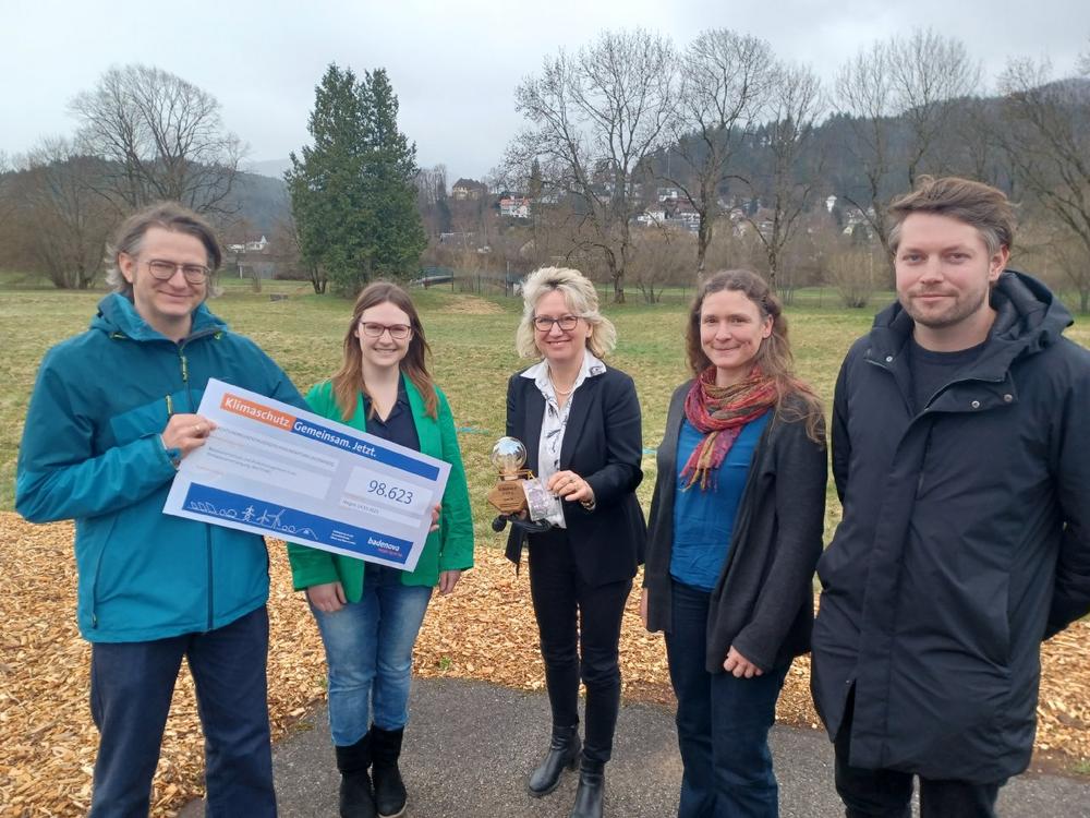 Fränzi Kleeb, Bürgermeisterin der Anrainergemeinde und badenova-Gesellschafterin Stegen, ist auch deswegen dankbar für die Projektidee und deren Umsetzung: „Der risikobasierte Ansatz des Ressourcenschutzes hat nicht nur Pilotcharakter für die Region Freiburg, sondern kann auch eine mögliche Blaupause für andere Wasserversorger sein. Anspruch der badenova Gesellschafter ist immer, dass die vom badenova Innovationsfonds geförderten Projekte beispielgebend und übertragbar sind.“ Kleeb überreichte bei einem Pressetermin, in dem das Projekt vorgestellt wurde, stellvertretend für alle badenova Gesellschafter den Förderscheck wie auch an das TZW den von den Gesellschafterkommunen vergebenen „Klimaheldenpreis“.