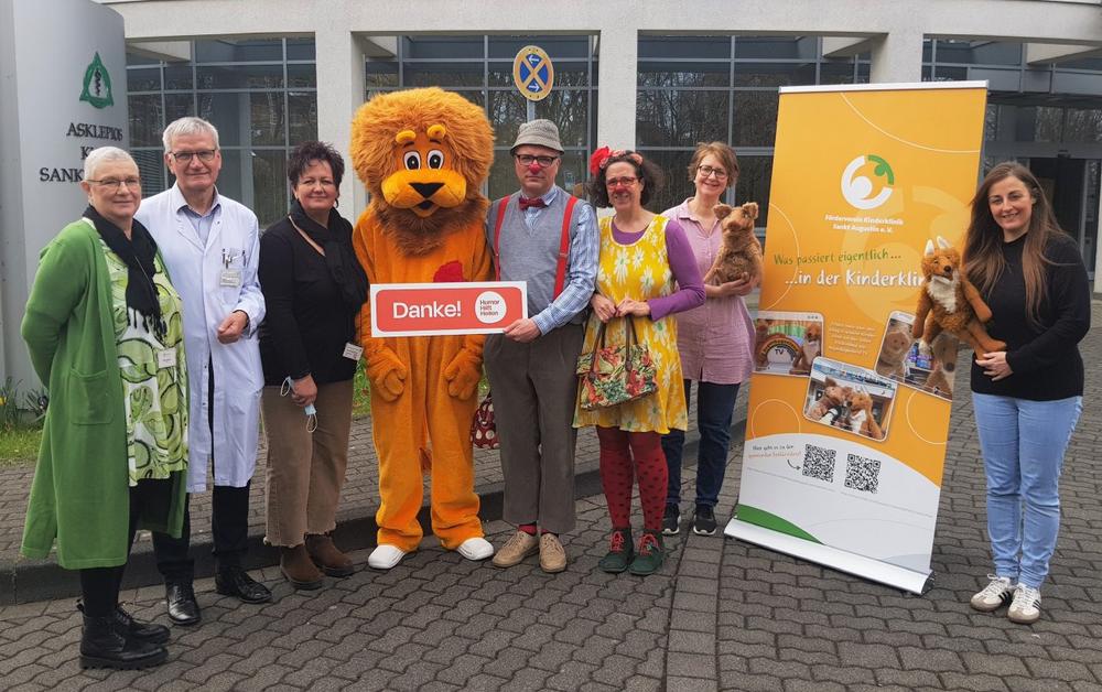 An der Kinderklinik in St. Augustin ist man überzeugt: Humor hilft bei der Heilung! Auf inzwischen drei Stationen der Kinderklinik Sankt Augustin sind Klinikclowns der Stiftung HUMOR HILFT HEILEN regelmäßig anzutreffen. Bereits seit 10 Jahren besuchen die Klinikclowns dort krebskranke und chronisch kranke Kinder. Zu diesen Klinikclown-Visiten ist im Herbst 2022 in Sankt Augustin (und damit im Rhein-Sieg-Kreis einzigartig) ein weiteres „Einsatzgebiet“ hinzugekommen: Ein HHH-Klinikclown begleitet einmal pro Woche Kinder bis zum Operationssaal. Damit alle diese Klinikclown-Einsätze möglich sind, sichern drei an der Klinik angesiedelte Vereine die Finanzierung.