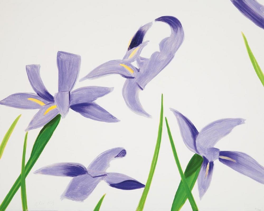 Alex Katz neue Flowers zeigen eine Art lakonische Botanik, die leicht zerbrechlich erscheinen mag, wenn der unsichtbare Wind Blätter abreißt und ein flatterndes Gefühl von Dynamik erzeugt, aber diese floralen Ikonen werden zu unbeweglichen Objekten, die in einem Farbfeld die Hauptrolle spielen.