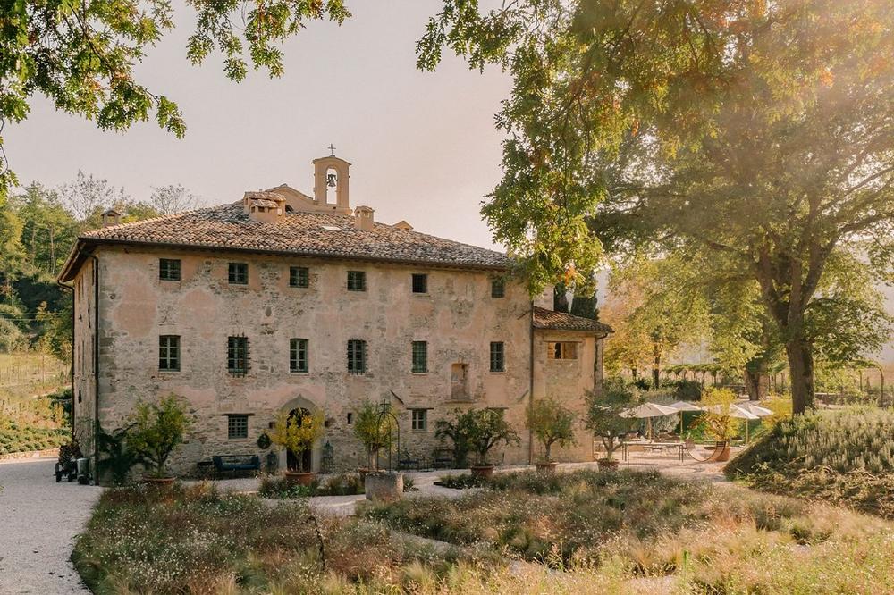 From ingredients used in the restaurant to an iron pergola to bespoke furnishings, everything at Vocabolo Moscatelli in Umbertide, a village in Umbria, is locally sourced and produced. Housed within a 12-century monastery, faithfully restored by Jacopo Venerosi Pesciolini of studio Archiloop, and centered around a piazza with a historical church, the property feels like a miniature Italian village in and of itself. Original stone and brick structures are augmented by crisp, contemporary lines in the 12 guestrooms and suites, each of which is individually designed with custom furnishings by Samarreda and Tosconova. Outside, a 30-meter pergola, forged by the century-old Italian blacksmith brand Lipsi, stretches back to a grove where the Arboreal Archaeology Foundation has planted forgotten fruit trees native to the region.