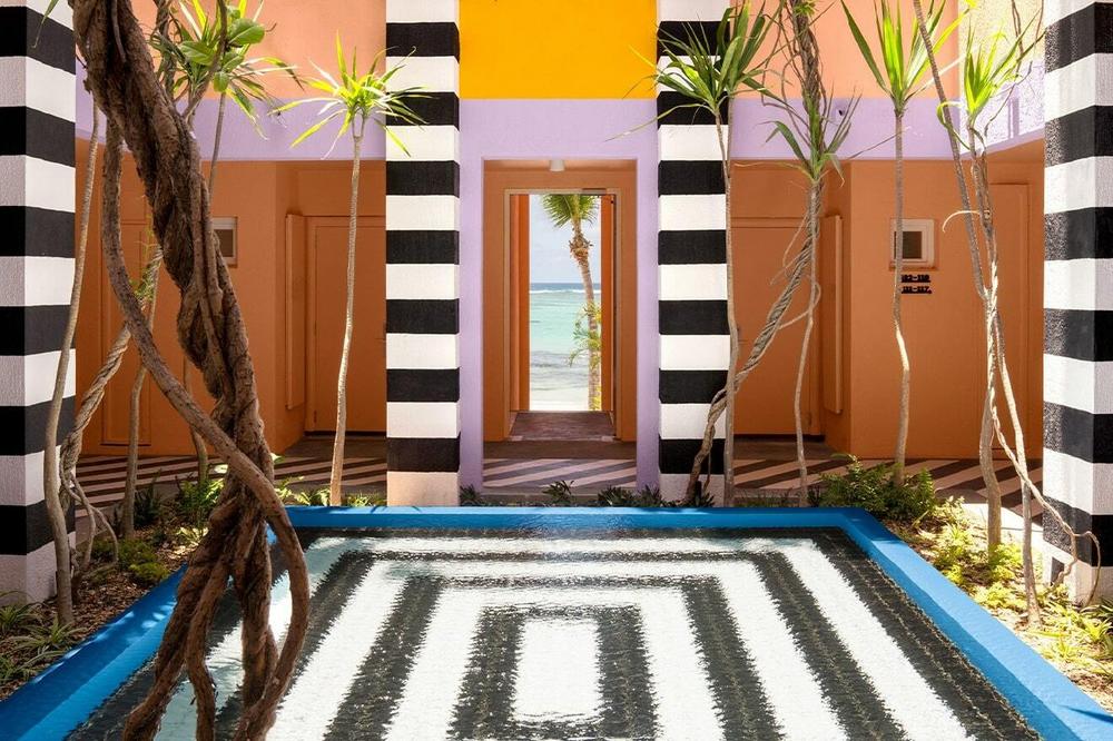 Similarly, artist Camille Walala brought the essence of the island into the interior design concept: “I was blown away by the vibrant colors around the island. People paint their houses in the most amazing tones that really stand out against the emerald green of the plants and the ever-changing colors of the sky,” she says. “I wanted to marry these tones with my signature pop colors.”