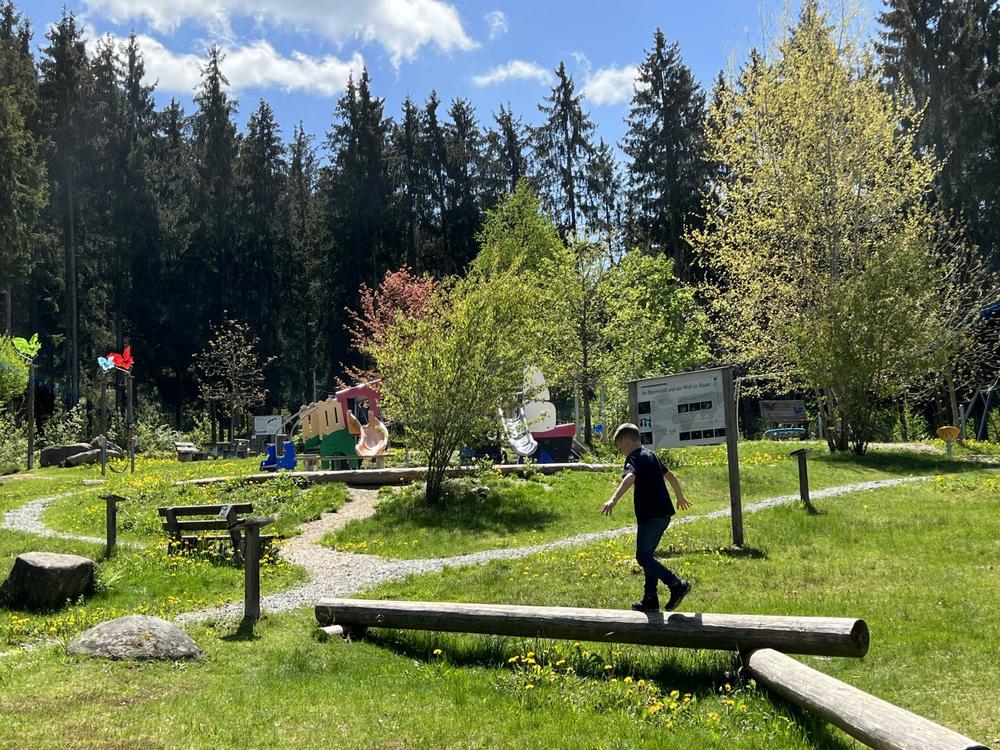 Der rund 2,5 Kilometer lange Rundweg „Wildtiere“ ist mit dem Kinderwagen oder Buggy gut begehbar und führt zunächst in eine Steinzeithöhle. Vorbei an friedlich weidenden Wildpferden und dem Urrind, die wie alle Tiere hier in naturnah gestalteten Freigehegen leben, geht’s weiter zu den Wölfen und Luchsen. Von überdachten Stegen sowie Aussichtstürmen aus können die scheuen Tiere im dichten Grün erspäht werden. Nach dem rund eineinhalbstündigen Rundgang durch das Nationalparkzentrum ist der Besuch des „Haus zur Wildnis“ nicht nur wegen seines erstklassigen Restaurants empfehlenswert: Die verschiedenen Ausstellungsbereiche rund um das Thema Wald und Wildnis sind so gestaltet, dass sie auch von den Kindern selbständig erobert werden können. Beim Wurzelgang begleitet ein freundlicher Waldgeist die kleinen Besucher auf ihrer Reise durch die spannende Welt unter dem Waldboden. Im Erlebnisraum lädt eine große Buche zum Klettern ein, an einer Wand wird Naturkunde für Nachwuchsforscher mit spannenden Experimenten erlebbar gemacht.