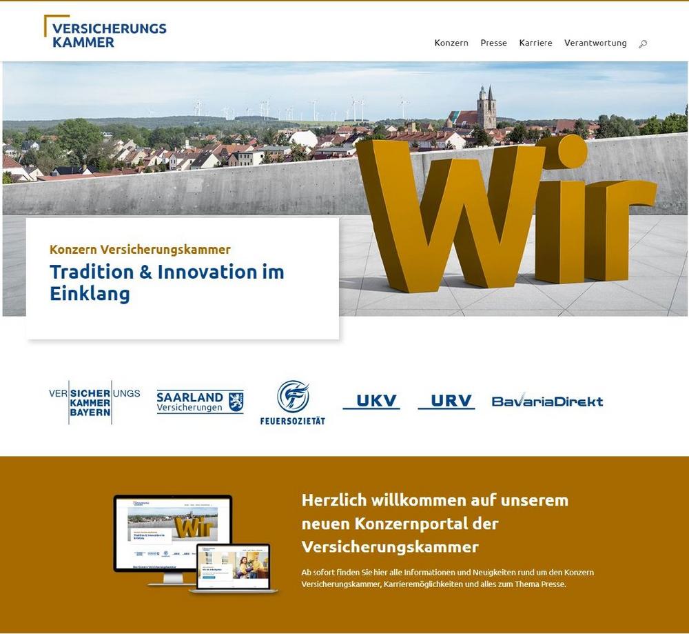 Der Konzern Versicherungskammer geht mit einem neuen Internetauftritt unter www.konzern-versicherungskammer.de an den Start. Nutzer*innen erhalten übergreifende Inhalte zum Konzern und seinen Unternehmen. Ein Fokus liegt unter anderem auf Themen Diversität, Nachhaltigkeit und dem gesellschaftlichen Engagement. Zudem wurden die Bereiche für Medienvertreter*innen und Bewerbende komplett überarbeitet.