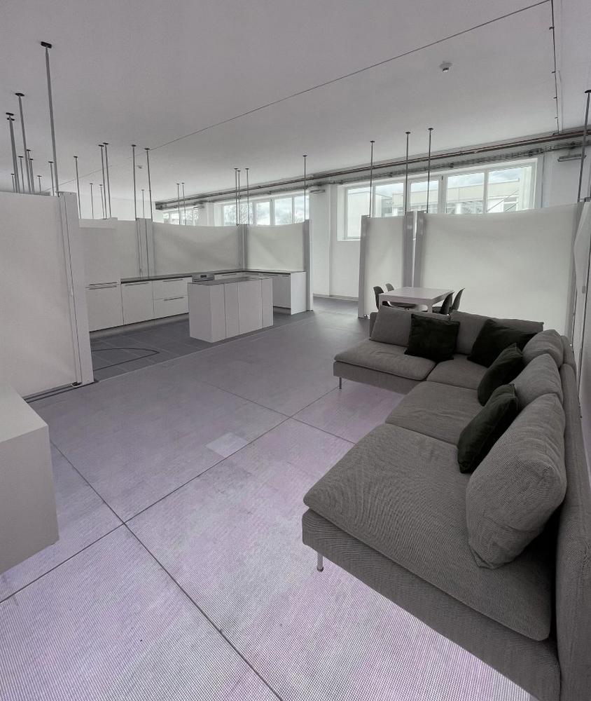 So wurde Lea Dörrmanns Idee Wirklichkeit. In einer Halle in Neumarkt in der Oberpfalz ließ die Gründerin 220 Quadratmeter des Hightech-LED-Bodens verlegen und feierte im November 2022 Eröffnung. Wer das Angebot nutzt, bekommt ein echtes Raumerlebnis geboten: Der Grundriss wird auf dem LED-Boden abgebildet, mit flexiblen Wänden werden die Räume noch realistischer gestaltet und auch eine Möblierung ist möglich. „Die Nachfrage ist groß und kommt aus den unterschiedlichsten Bereichen“, resümiert sie rund vier Monate später. „Wir machen mit (T)Raumerlebnis die Phantasie greifbar. Das ist nicht nur für Menschen interessant, die ein Haus oder eine Wohnung planen.“ Auch gewerbliche Kunden profitierten bereits auf unterschiedliche Weise von dem Angebot – darunter ein Unternehmen, das seine Büros neu einrichten wollte und alle Mitarbeitenden zum Testen der Raumordnung mitbrachte. So konnten diese sich davon schon ein Bild machen – und mitentscheiden, wo noch nachgesteuert werden musste.