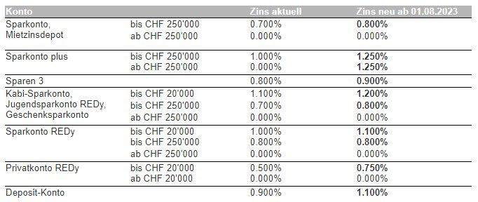 In der aktuellen Zinsrunde erhöht SZKB die Zinsen auf diversen Konten um 0.10 bis 0.25% Punkten. So wird beispielsweise ein Guthaben auf einem Kabi-Sparkonto bis CHF 20’000 zu 1.20% verzinst. Das Sparkonto plus neu ohne Betrags-Obergrenze gar zu 1.25%.