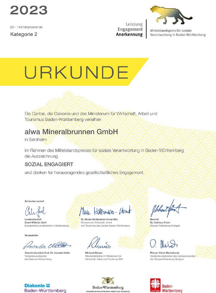 In der Kategorie „Sozial Engagiert“ qualifizierte sich auch die alwa Mineralbrunnen GmbH.