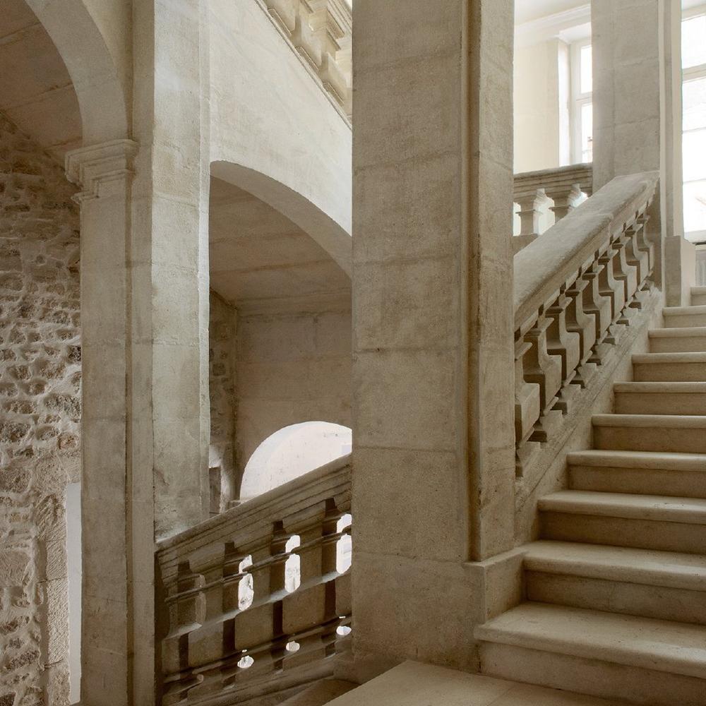 In the heart of Provence, Originals Ralph Hüsgen and Margot Stängle transformed a 17th-century palais into Hôtel de Tourrel, an intimate getaway with nine spacious guestrooms and suites, as well as a Michelin-starred restaurant. When researching historic techniques to restore the manor to its original splendor, the pair discovered stucco under peeling paint and hired a professional team of conservators who took 13 weeks to fully uncover it. The stucco can now be seen alongside original sandstone floor tiles in the foyer, large arched windows, a grand staircase, and exposed stone walls. One room, situated within what was once the mansion’s salon, even boasts an original marble fireplace. Such features are charmingly mixed with modern furnishings, including colorful chairs by Eileen Gray and tables by Konstantin Grcic.