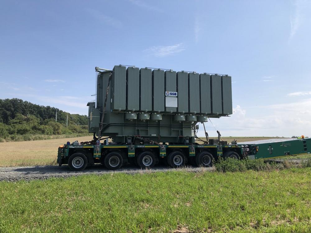 Der erste Transformator trat bereits in der Nacht zum 15. August seine Reise vom Hersteller in Regensburg Richtung Unterfranken an. Der zweite Trafo folgte nun in der Nacht zum 24. August. Die Anlieferung geschieht nachts zu verkehrsberuhigter Zeit – denn die schwergewichtigen Trafos müssen auf einem Tieflader per Lkw transportiert werden und nehmen viel Raum auf der Straße ein. Für die letzten Kilometer bis zum Umspannwerk wurden die Trafos auf Selbstfahrer umgezogen. Sie haben einen kleineren Wenderadius als Lkw und schafften es auch durch enge und steile Straßen vor Ort. Mit einer Polizeiflotte und etlichen Schaulustigen kamen die Trafos problemlos am Umspannwerk in Kerbfeld an und wurden dort erfolgreich installiert.