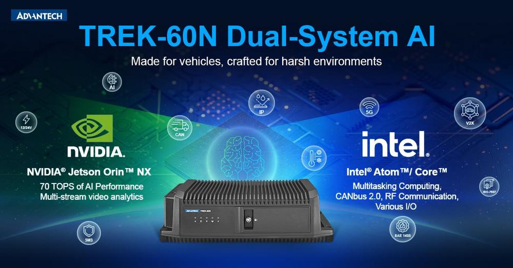 To meet the growing demand for computing performance, TREK-60N takes it one step further with its innovative dual-system design. This advanced computing platform is equipped with two embedded processing systems, catering to edge AI applications. Powered by a liable and powerful Intel® Core™/Atom™ E3940 processor, TREK-60N delivers stable high-performance computing capabilities, ideal for multitasking. Additionally, it integrates the NVIDIA® Jetson Orin™ NX as the AI Accelerator, offering an impressive 70 TOPS of computing ability. This enables real-time multi-stream AI computing and facilitates the simultaneous execution of multiple applications.
