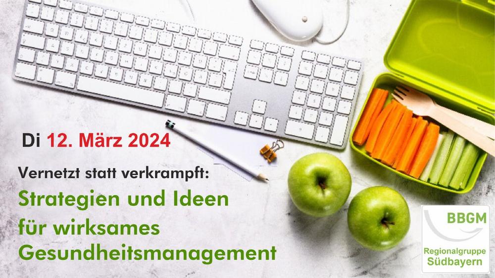 Der Bundesverband Betriebliches Gesundheitsmanagement e.V. [BBGM] ist ein selbständiger und unabhängiger Fachverband. Der BBGM steht für alle Themen der betrieblichen Gesundheit mit dem Ziel der Stärkung, Erhaltung und Wiederherstellung der Gesundheit und Leistungsfähigkeit von Mitarbeitenden und Führungskräften durch Maßnahmen des betrieblichen Gesundheitsmanagements. Der BBGM bietet internen betrieblichen Fachkräften sowie externen Akteuren für die betriebliche Gesundheitsarbeit: Orientierung, Qualifizierung und fachbezogenen Austausch. Die BBGM-Regionalgruppe Südbayern unterstützt diese Ziele aktiv mit Impulsvorträgen, Workshops, Events und Netzwerktreffen in München, die nicht nur für BBGM-Mitglieder sondern auch für andere BGM- und BGF-Interessierte zugänglich sind.