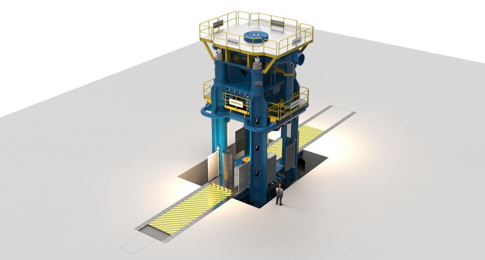 Der modulare Aufbau der hydraulischen Presse ermöglicht die Aufnahme eines isothermen Schmiedemoduls, mit dem Aubert & Duval künftig Hochleistungsbauteile für Flugzeuge und Triebwerke auf der Basis der Vakuum-Pulvermetallurgie herstellen kann.
