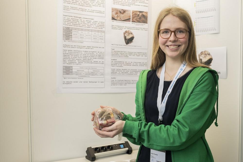 Ja, wir konnten uns ein beliebiges naturwissenschaftliches -Thema überlegen. Das ging von Programmieren über Bauen bis hin zu biologischen Themen. Ich hatte erst mal keine Idee, wollte aber gerne im Labor forschen. Dann haben mir meine Lehrer vorgeschlagen, etwas in Richtung „Baustoffe aus Pilzmyzel“ zu machen. Da habe ich angefangen zu recherchieren. Den ökologischen Aspekt finde ich besonders cool: einen Stein aus Pilzmyzel zu bauen und zu optimieren. Ich finde es spannend herauszufinden, ob sich die Druckfestigkeit erhöht, wenn ich die Inhaltsstoffe variiere.