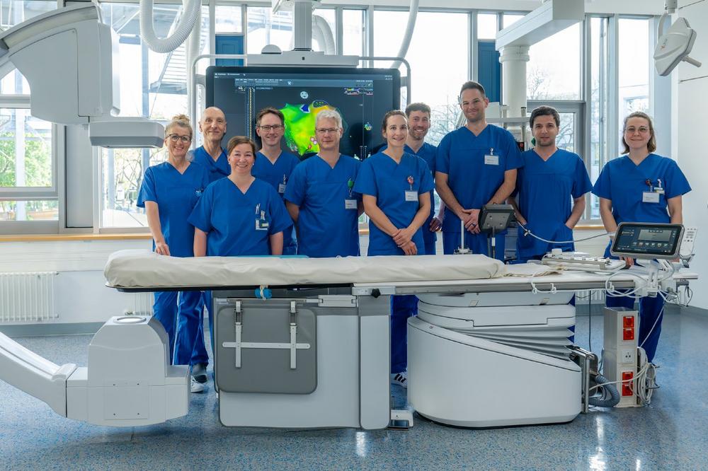 „Wir verfügen nun über die modernste auf dem Markt erhältliche Anlage“, freut sich Prof. Dr. Julian Widder, Direktor der Medizinischen Klinik IV, der mehrere Vorteile des neuen Labors aufzählt: „Zum einen sorgt die Software dafür, dass die Patientinnen und Patienten, aber auch die Mitarbeitenden, einer deutlich geringeren Strahlenbelastung ausgesetzt sind. Zum anderen verfügt das System über einen Großbildschirm, auf dem die Behandlungsteams während des Eingriffs gleichzeitig alle wichtige Informationen sehen können.“